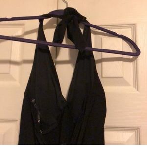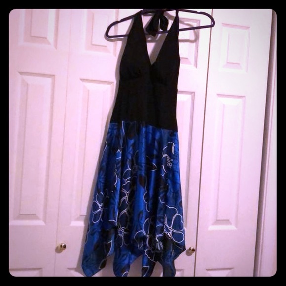 Beautiful dress with halter top that ties around neck. Flower pattern on skirt. Brand new....never used.