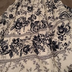 Dark blue floral A-line dress that hugs the waist with v cut neck line and v cut in the back