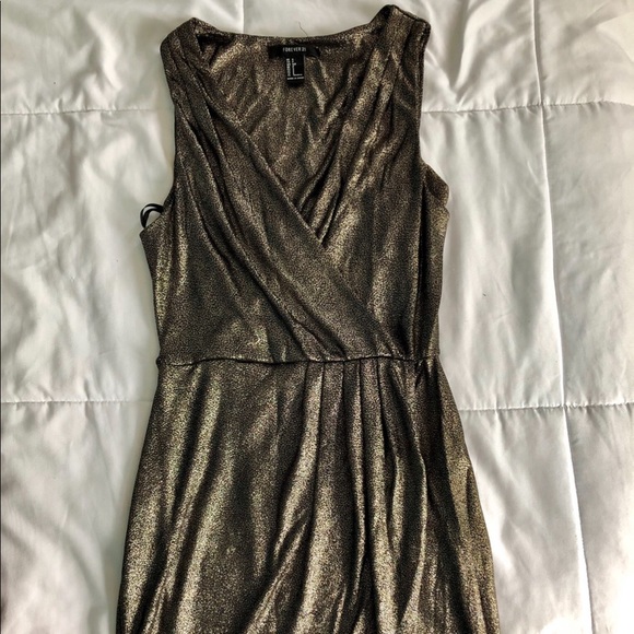 Shimmery metallic dress great for the holidays! Dress runs above the knee. Worn one time and in good condition