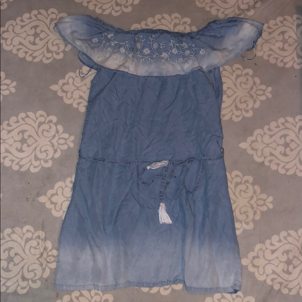 Super lightweight and cute dress. Made out of blue jean material. Like new condition. Only worn twice. I am 5’4 and about 130 pounds and it fits perfectly.