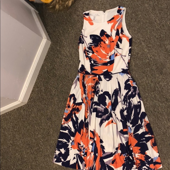 Off white floral dress with pleats on bottom was a size 4 was taken in to a size 2 can be let out