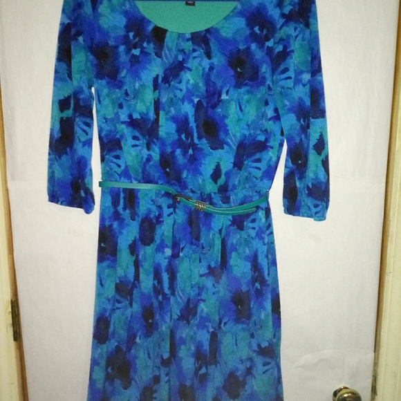 Blue and aqua dress with belt