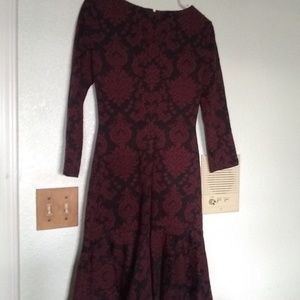NWOT. Beautiful maroon and black in colors. 3/4 length of the sleeves. Ruffle around the dress at the bottom. Comes from a smoke and pet free home.