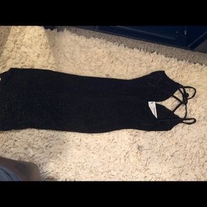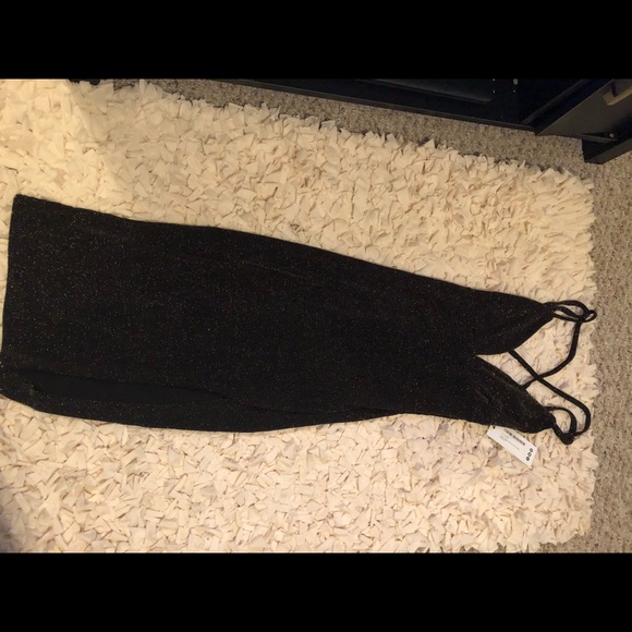 Black sparkly gold dress with split on the side
