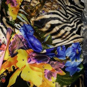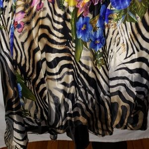 Strapless formal dress, or either a prom dress with floral and zebra design all around the dress. It's a mermaid fit. There's also rhinestone detail on the dress. Only wore it once, but in great condition.