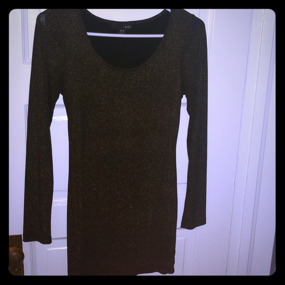 Black mini dress with gold sparkle. Long sleeve, perfect for new years.