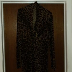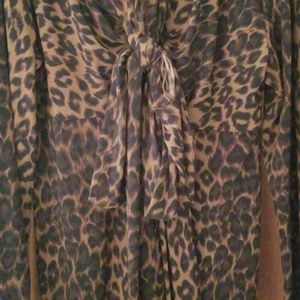 Black and Brown print dress. Sexy with tie at neck line. Excellent condition.