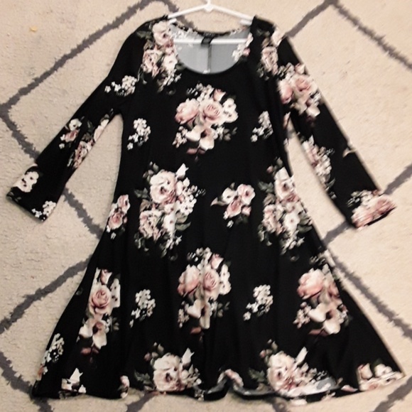 Black short dress with flowers on it, supper comfortable and great to where in spring