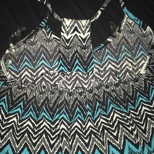 Turquoise Black White (Aztec Print) summer dress great for beaches! Fits loose Mid Length