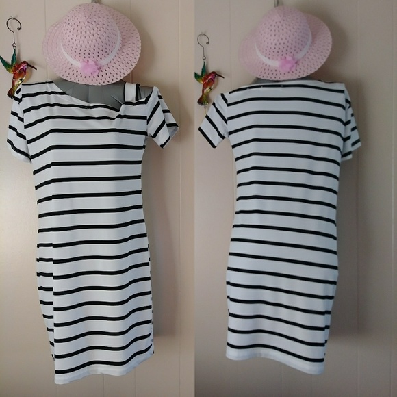 Black ~n~ White Stripped left off the shoulder mini Dress