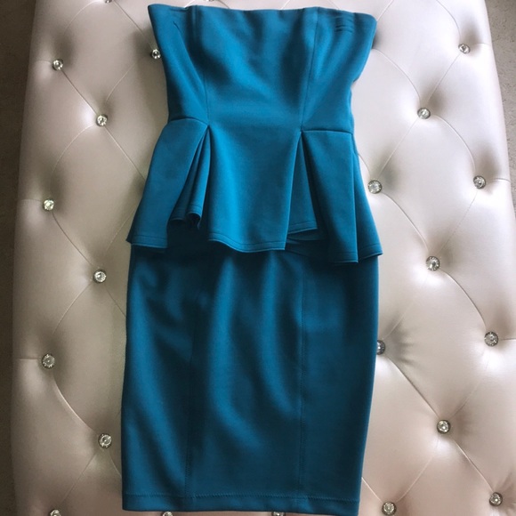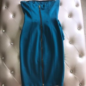 Tight Fitted Teal Color Knee Length Dress with Zipper up the Back