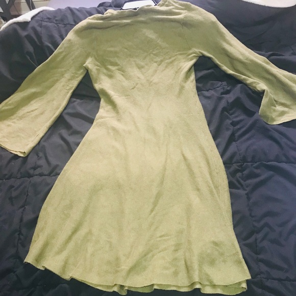 A green long sleeve above the knee dress