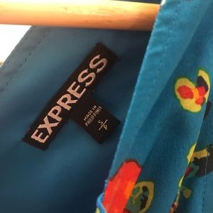 Express size small. Wore twice to weddings. Silky lining makes it very comfy. Also selling a statement necklace that goes well with the dress!