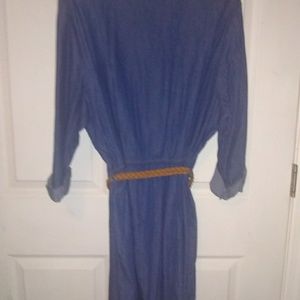 Derek ❤️heart plus dress. denim with brown woven belt. Button up.