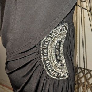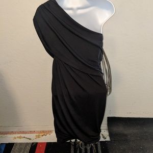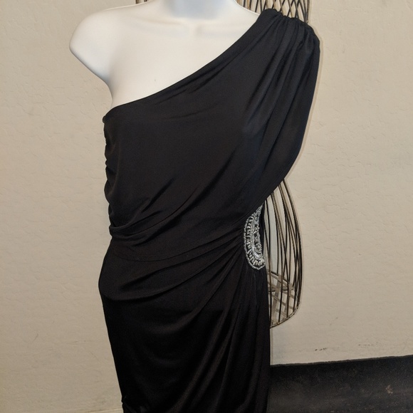 Cute one shoulder dress with beautiful rhinestone accent patch one left waist side