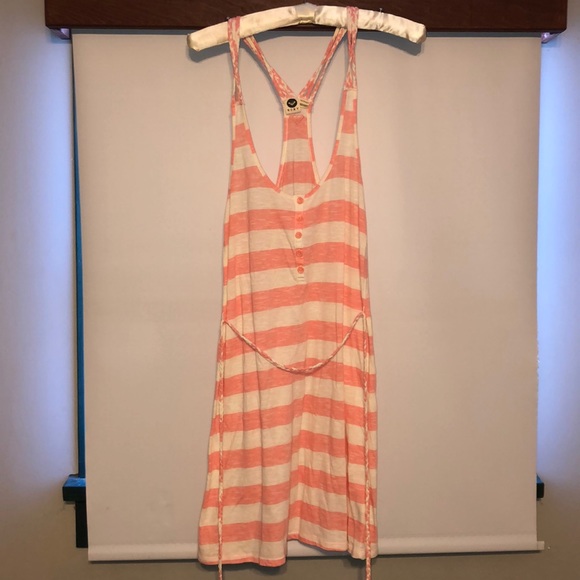 This is good for going to the beach or to wear on a sunny day. Also has never been worn and has ties that can be tied on the waist but can be removed from the dress and is comfortable and loose to wear!!!