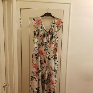 Floral ruffle sleeve woven maxi dress, body 100% polyester & lining 100% polyester, worn once
