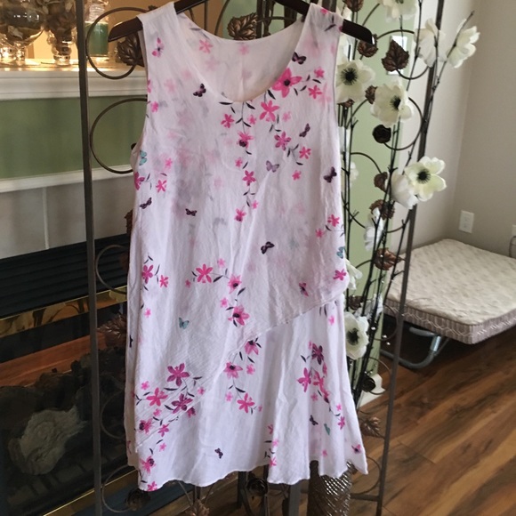This dress is great but I am in need of room in my closet ,has never been worn, with small pink flowers and butterflies, Will fit size extra small to small this dress was purchased in Bahamas in October 2018.