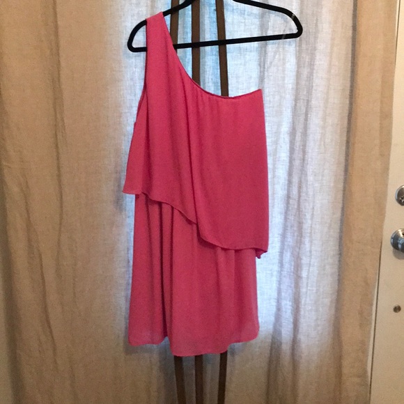 One shoulder bubblegum pink dress