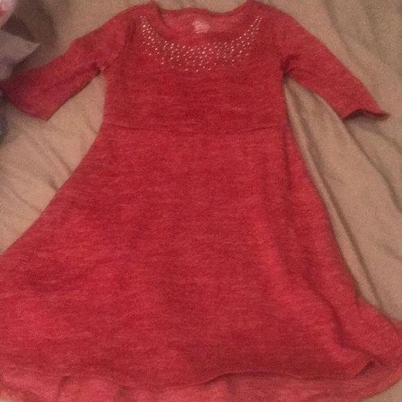 Strawberry color casual girls dress with silver rhinestones across the neck