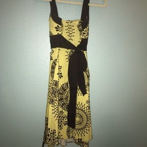 Light green dress with brown floral designs
