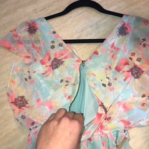 NWOT sheer dress with arm and back slits, and belt. Perfect for Easter or any spring day