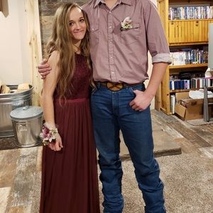 Beautiful maroon dress! Worn only once for Homecoming! Lace top and beautiful sheer as the bottom!