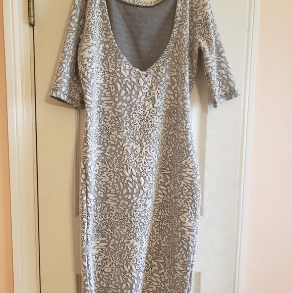 It's a black an beige dress it's a skinny long dress with low cut back out size m.