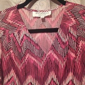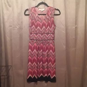 Sleeveless pink/black/ white printed dress size:4petite