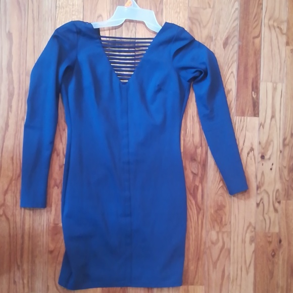 Navy blue long sleeve midi dress, lining, mix of spandex and nylon, good quality, light fabric, very elegant, wore once, good condition.