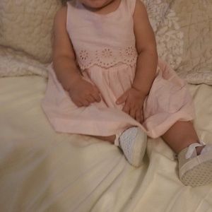 Pink eyelet dress with button detail on back. Perfect conditions. No stains.