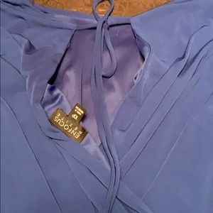 Royal blue knee length dress that ties in the back, has a pinched waist with blue belt to match.