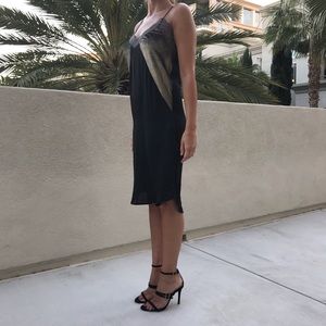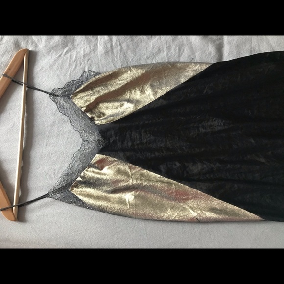 Black dress size S from Zara. This chic dress features a silky black body with a sheen gold nuances and topped in a beautiful lace. The lower back is slightly stretchy and the whole piece is finished off with a sexy slit on each side of the dress skirt. Comfortable and lovely to wear for any occasion. Made in Morocco. New without tags.
