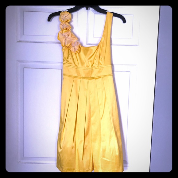 Bright yellow color! Super fun, knee length dress. Satin-type material