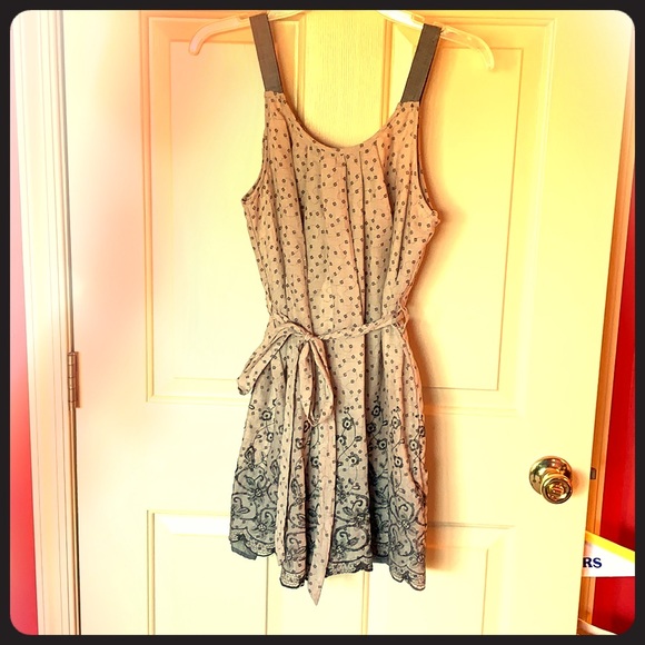 Super comfortable, printed dress. Grey accents and sewing. Tie waste removable. Wear with tie or without depending on the look you are going for