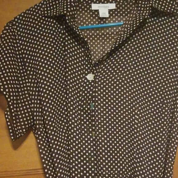 Shirt dress, brown and white polkadot shirt dress, been wone couple of times but no discoloration or damage to it. Front boton maxi shirt dress