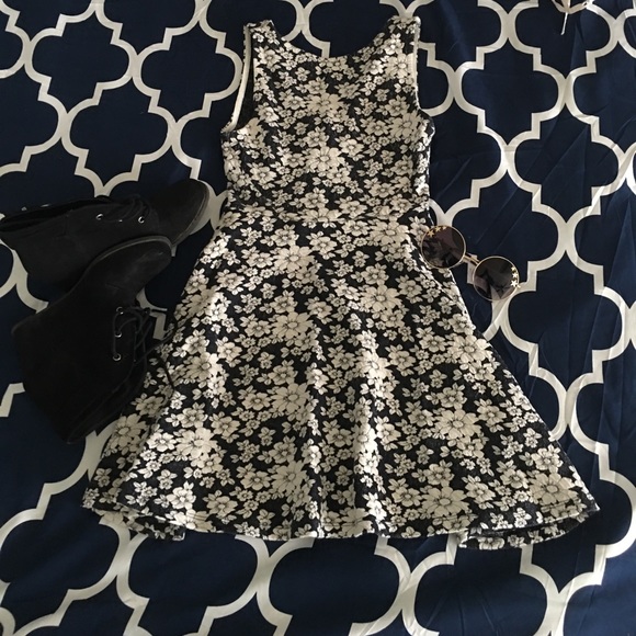 Very cute short black and white floral dress. Runs a little small in the arms. Works well with many occasions and accessories.