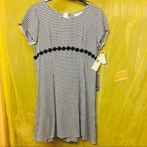 Beautiful black and white gingham dress w/ black flowers just below the bust line.