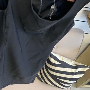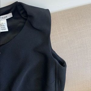 Cute black work dress that has a short zipper on both sides of the bottom which opens up to white fabric