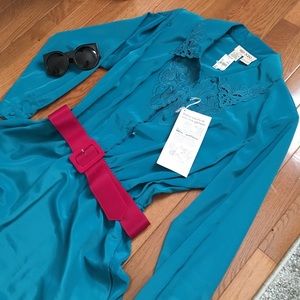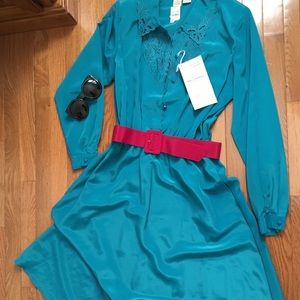 Old fashioned style// dress// blue// magenta belt//polyester// Size 12T