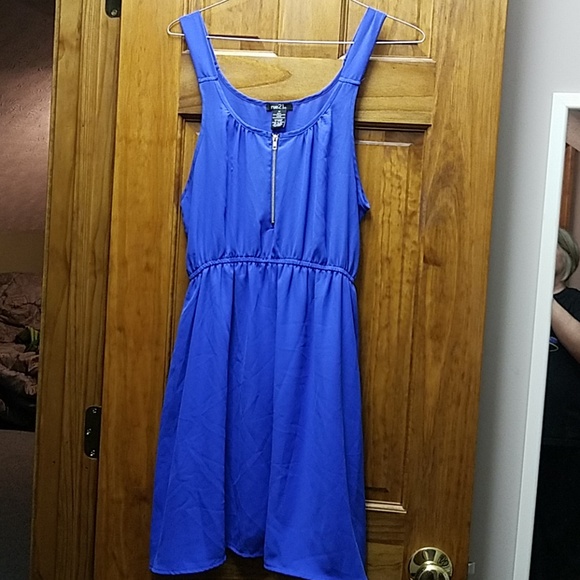Royal blue like new summer dress with elastic waist and gold zipper