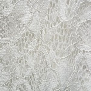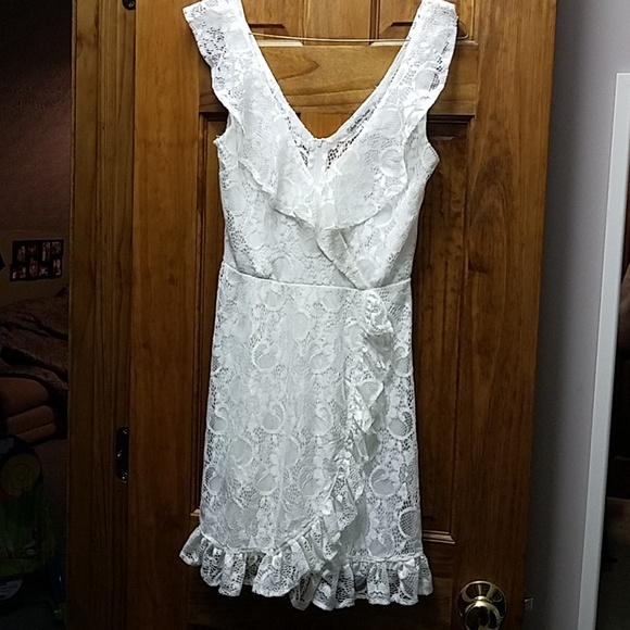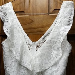 Lacy white adorable dress with back zipper and ruffle layered with slip built in. Worn once by daughter.