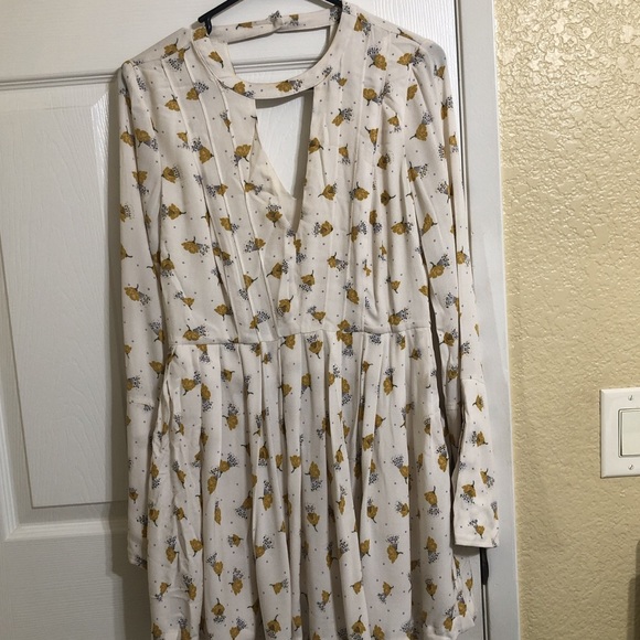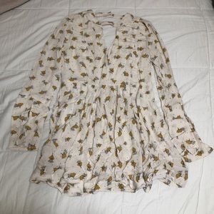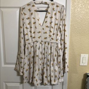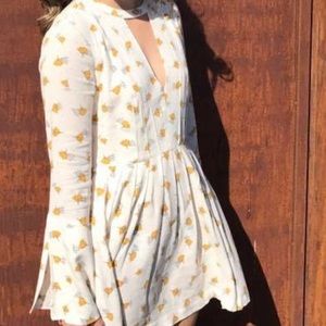 Free people dress worn once has pockets, zipper on the side with bell sleeves and deep v front with button in the back