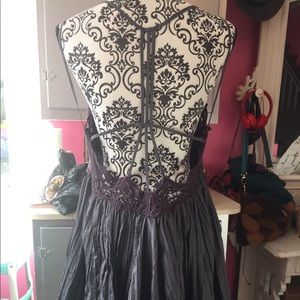 Beautiful summer dress gun metal color with spaghetti type straps. Lace design in front and nice back design with straps. Size M