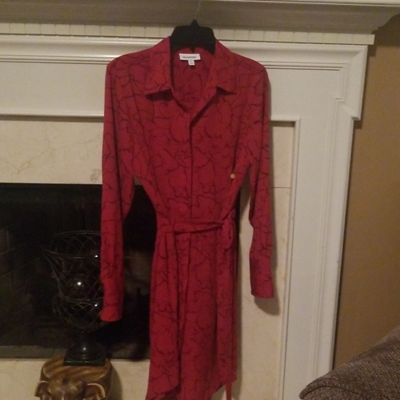 Red flowers dress with belt. Size medium. Made by Prologue. Never worn. Removed tags