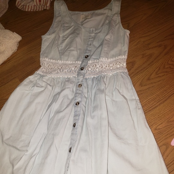 Light Blue with White Lace Dress, with buttons