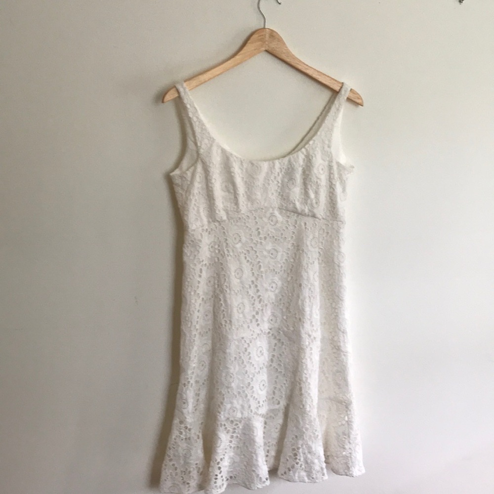 Slightly wore white dress. Size us 12 but it runs small. I am