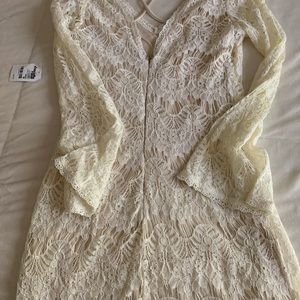 Off white dress with nude lining underneath. Never worn. Super cute dress!
