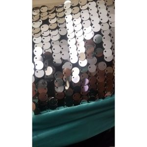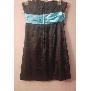 Strapless black with blue center dress. The sequence has no fall out and dress is in excellent condition. Willing to sell to best price offered. Great for school dances!