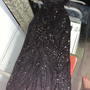 It is long. Goes up to knees, upper body, goes around your neck. Very classy